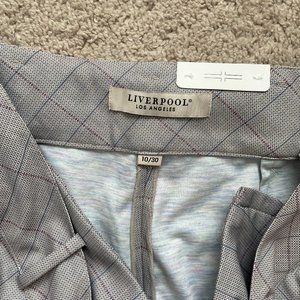 NWT Liverpool Women's trousers Liverpool Los Angeles Side Zip Trouse With Self Belt Taupe Grey Mauve Windowpane Plaid Size 10