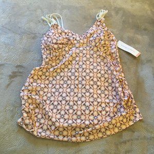 NWT Liz Lange Maternity white with orange and black flowers tankini Size S
