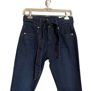 Brand new with the tag! Belted jeans with a raw hem and double buttons.