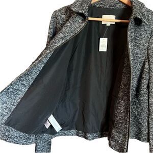 Step into effortless elegance with the NWT Loft Wool Blend Zip-Up Coat. This brand new coat, still with its tag, is a stylish addition to your winter wardrobe. Crafted from a great wool blend, it provides both warmth and sophistication.