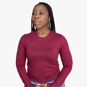 (NWT) Long Sleeve Double Layer / Long Crop Top - Burgundy