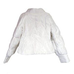 Italian made jacket. White shiny organza like material exterior. Has slight puff to the jacket.