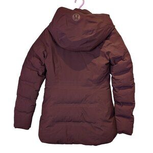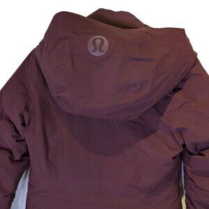This Lululemon Down Coat is waterproof and warm. It has Waterproof and breathable Glyde fabric and is seam-sealed to keep you dry. It has 600-fill-power goose down to insulate through extra loft. The jacket provides lightweight and bulk-free warmth, zippered exterior pockets with a hidden phone sleeve. It has a cinchable waist and hood and a classic fit, thigh length. Size 4