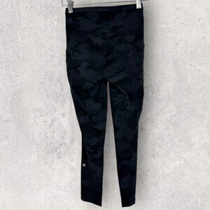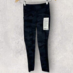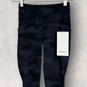 Lululemon Swift Speed HR Crop 23"" Leggings in Camo Print and Women's Size 2. Style # LW6BR9S. Colour is called Heritage 365 Camo Deep Coal Multi. Made of Luxtreme fabric. Has reflexive details. Lots of pockets. Sweat-wicking. Four way stretch. Engineered not to shrink. Designed for running. Drop in pockets on the side for your phone. Drawcord waist. Made in Cambodia. Nylon and lycra spandex. Brand new with tags. No flaws.
