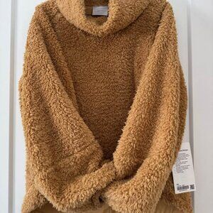 New with tags! Retail $148 before tax. This is a double layer fleece (inner lining is a heavy T-shirt fabric) that’s almost a pullover jacket. Warm and cozy and fairly heavy… it’s like wearing a fuzzy weighted hug. It feels so GOOD. Single middle pocket with a secret phone pocket inside that. Waist length at the front and lower at the back. I own two other colours and decided to set this one free!