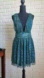 Stylish sleeveless dress in a beautiful teal shade. Features a deep V-neck and pleated skirt.