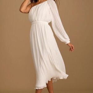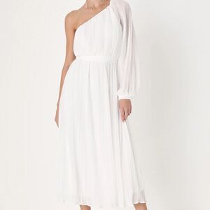 NWT Lulus Always Loving You White Pleated One Shoulder MIDI Dress Sz M