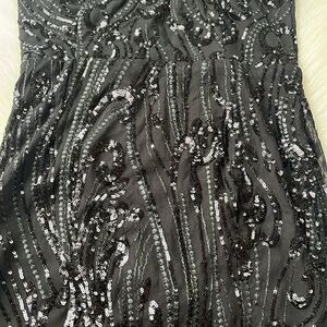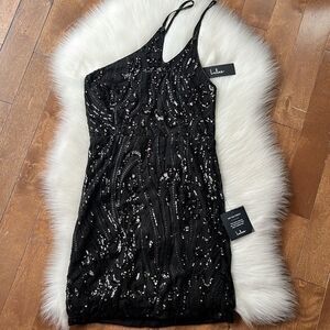 NWT Lulus Black Sequin One-Shoulder Mini Dress M Party Clubwear Stretchy