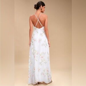 NWT Lulus Blooms for You Light Blue Floral Print Maxi Dress