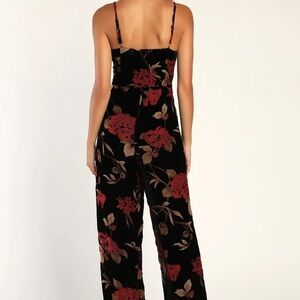 NWT Lulus Elegant Effort Black Velvet Floral Cowl Neck Wide-Leg Jumpsuit