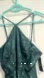 Chic emerald satin dress with floral pattern. Ideal for elegant events.