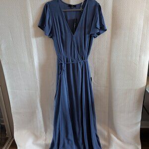 lulus maxi dress, wrap dress, flutter sleeve dress, blue dress, wedding guest outfit, boho chic, romantic style, summer maxi, new with tags, size medium dress, heart of marigold, lulus wrap dress, Crepe, Resortwear