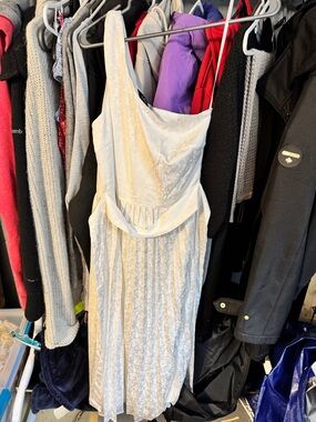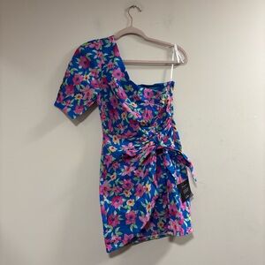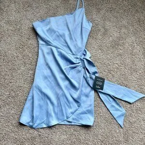 NWT Lulus Light Blue Satin One-Shoulder Mini Dress (Meant to Be Together) Size S