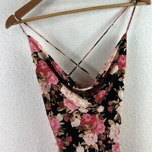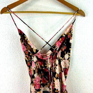 NWT Lulu’s Moment of Chic Black Floral Print Satin Lace-Up Midi Dress XS