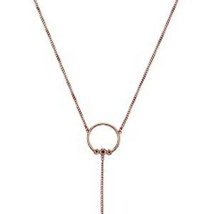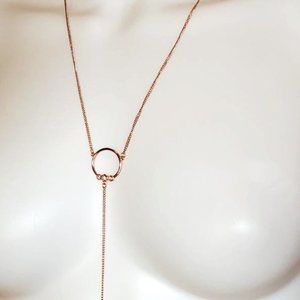 Lariat Style Necklace with Hexagon-shaped details around the center circle.