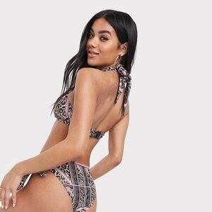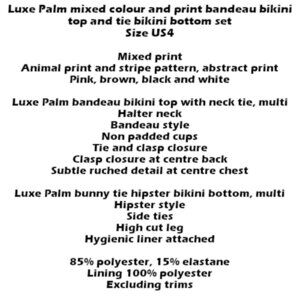 NWT Luxe Palm mixed colour & print bandeau bikini top and tie bikini bottom set