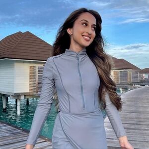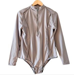 NWT Lyra Modest Swimwear Long Sleeve Swimsuit Grey Size Large.