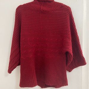 Red Turtleneck Pullover Sweater with a Large Button, braid pattern in the middle