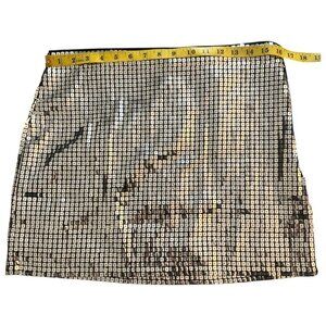 NWT MANGO Sequin Mini Skirt Size Large Black Silver Y2K