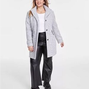 NWT MARALYN & ME Trendy Plus Single-Breasted Light Grey Boucle Walker Coat Sz 3X
