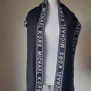 NWT MICHAEL KORS Women's Knit Long Scarf Logo Name Black & Metallic Silver Gift