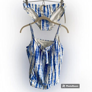 NWT MICHAEL Kors Striped Blue and White Tankini Swimsuit Size S