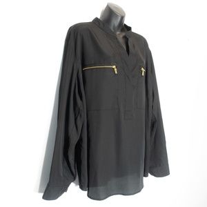 NWT MICHAEL Michael Kors Black Long Sleeve Blouse