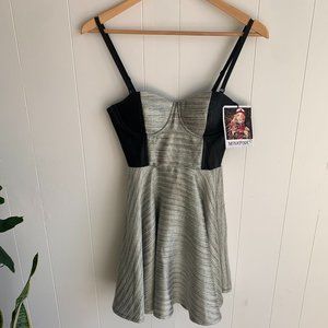 Beautiful MINKPINK mini dress size small, new with tags. Has faux leather sides and mesh back, with zipper closure. Padded and underwire cups and has boning in the sides. Straps are removeable. Smoke free home.