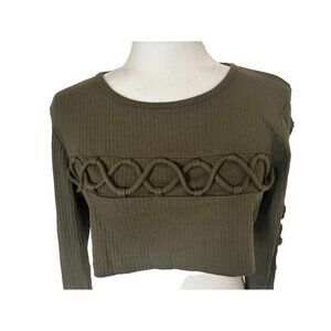NWT MISSGUIDED Top Size 10 Khaki Green Ribbed Knit Crop Top Cross Lace Detail