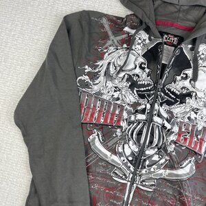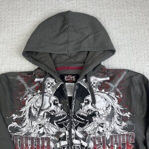 NWT MMA Elite Hoodie Gray Full Zip Up Small Y2K Goth Skull Punk Affliction Style
