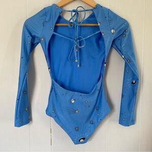 NWT MOLA MOLA Astral Tiger Surf Teen Swimsuit Blue Celestial Tie Long Sleeve