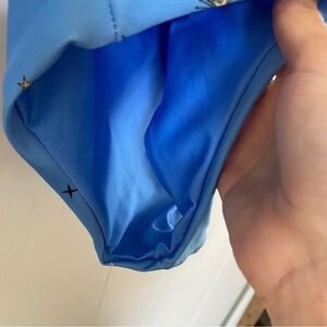 Brand new with tag. No hygienic liner, but has not been worn. Blue in colour with celestial pattern. Long sleeves. Tie back. Size 14. Regular $127 usd.