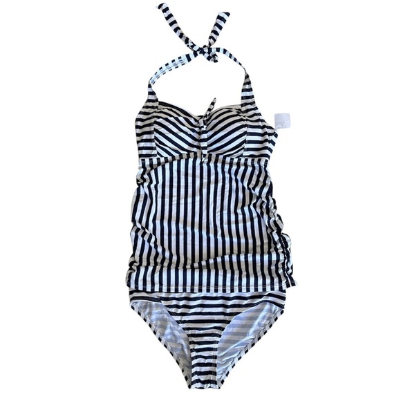 NWT! MOTHERHOOD, BEACH BUMP 2 Piece Striped Halter Maternity Tankini, Size Small