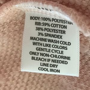 Fabric: Fleece - Body 100% Polyester Rib 59% Cotton 38% Polyester 3% Spandex