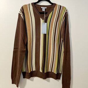 New with tags. Striped Multicolour V-Neck Sweater. Lightweight. Solid back. Gives retro vibes