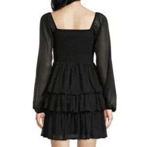 NWT Madden NYC Women's Black Triple Ruffle Smocked Peasant Dress, size S
