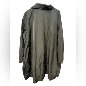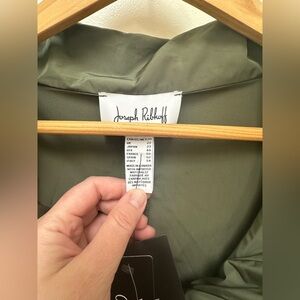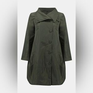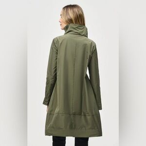 Brand new with tags Joseph Ribkoff long sleeve cocoon in size 20. The coat is designed in a solid olive green color with  softshell memory fabric. It also features an overlapping collar, long sleeves, off-center front button closure, and a hem that is knee length. Designed and made in Canada. Perfect for spring!