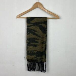 NWT Madewell Camouflage Camo Scarf Fringed Green Tan Black
