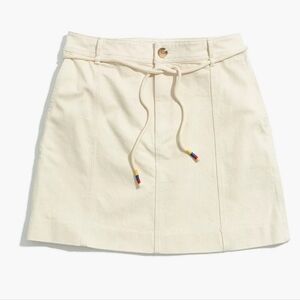 Made of cotton with a touch of stretch, this A-line mini skirt has '70s-flashback details like top-stitched seams, a patch pocket and a tie belt with ends wrapped in multicolored thread (yes, rainbows are a Madewell HQ obsession).