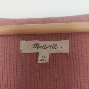 NWT Madewell Pointelle Square-Scoop Tee Rose Pink Ribbed Knit Long Sleeve XLarge.