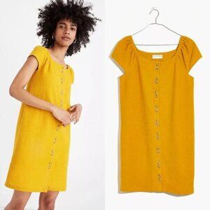 Madewell Texture & Thread Cap-Sleeve Mustard Yellow Dress in Women’s Size XXS. Retails for $125 CAD. Inspired by the idea that everything should be as comfy as a tee, our new Texture & Thread collection combines truly touchable fabrics with pulled-together shapes. Give your clavicles some well-deserved air-time in this sunny button-front dress with elastic cap sleeves that can be worn on or off the shoulder (looking cute couldn't be more of a cakewalk). Nonwaisted. Falls 29" from high point of shoulder. Cotton. Machine wash. Import. L8524 Brand new with tags! No flaws.