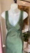 NWT Madison The Label V Neck Forrest Green Maxi Slip Dress With Lace Trim
