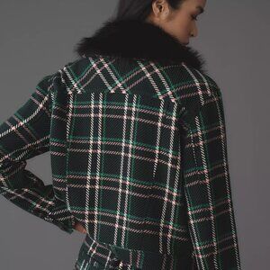 NWT Maeve Plaid crop Faux-Fur Collar Coat