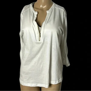 NWT Majora 100 Cotton,quarter front zip t shirt material ,blouse .Tie roll cuff