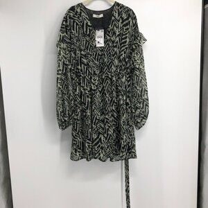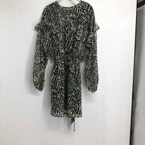 NWT Mango MNG green black Zebra print ruffle balloon sheer sleeve dress size 6