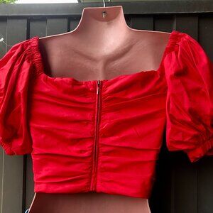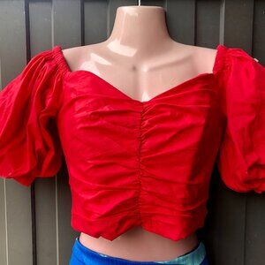 NWT Mango Red Puff Sleeve Ruched Crop Top – Size S – Organic Cotton