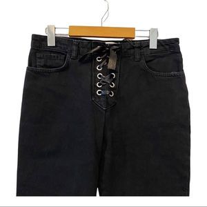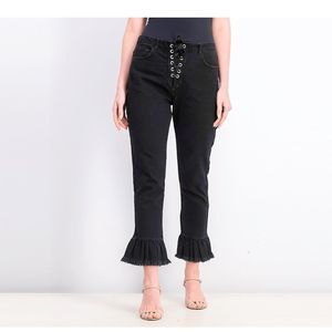 NWT Mango Women's Boot-Leg ruffle hem Lace Closure Jeans, Black 100% cotton