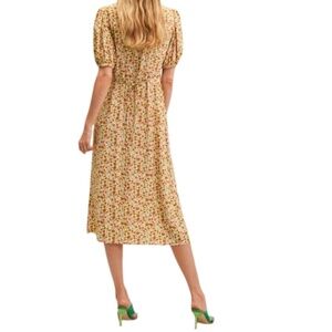 NWT Mango boho butter yellow floral print balloon sleeve wrap midi dress XS