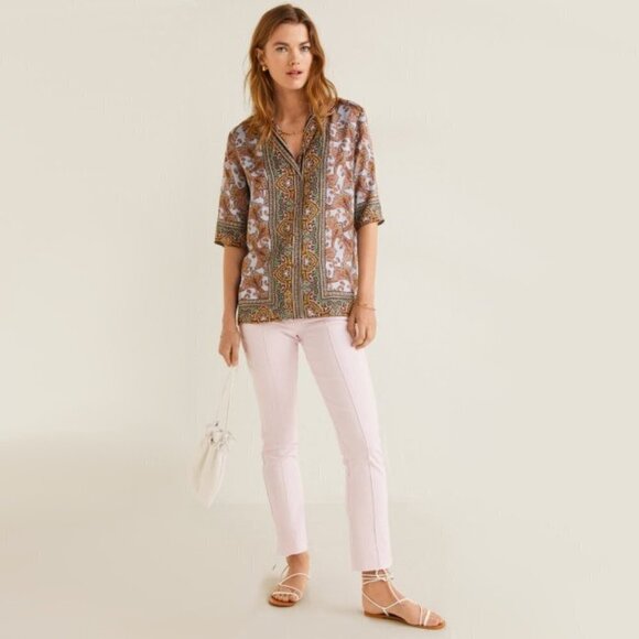 NWT Mango MNG Casual pink with purple undertones linen cotton blend darted trouser pants