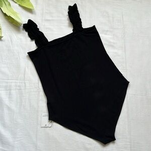 NWT MangoPop Square Neck Ruffle Strap Stretchy Tank Top Bodysuit